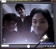 モニター画面右が,ディレクターの洋谷龍氏。サーバプログラマーの山口氏(中央)と,メインプログラマーの倉氏(左)も同席してくれた