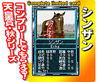 ○新規投入アイテム コンプリート限定Extraカード 【シンザン】 5冠馬、連続連対、長寿、2連続年度代表馬、顕彰馬等の様々な記録をもち、競走馬としてだけではなく、種牡馬としてもミホシンザン等強力な競走馬を残す、日本競馬会の伝説的な存在。