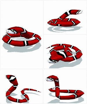 美しい珊瑚色のコブラ。その毒牙から毒を採取できる。