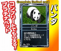 ○新規投入アイテム コンプリート限定Extraカード 【パンダ】 白と黒で覆われた体は見るものを惹きつける魔力を持っている。カード伝説地方競馬場のカード伝説限定カードの出現率を2倍にすることができる。