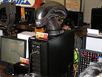 2005年に第1回が行われ,今年は全部で4回も行われたBIGLAN。第3回まではお台場だったが,第4回からは秋葉原で開催されるようになり,今回も広瀬無線本社ビルの5階にある,Necca秋葉原店のイベントホールにて開催された。スペースの都合もあるが,今回は満員(60名弱)になるのが早かったとのことで,会場はギッシリと自作PCが設置されていた。 プレイされていたゲームは,FPSの「Warsow」やレースゲーム「FlatOut 2」,「Warcraft III」などなど。本イベントでは,参加者による投票や協賛メーカーの選出による「デコパソ賞」も行われるため,凝ったデザインの自作PCも見受けられた。ただし前回に比べると,その数は少なかった模様だ。なお,今回は人数制限のために参加できなかった人達も結構いるらしく,アクセスのしやすい場所で,なおかつスペースのある建物を確保するのは,なかなか大変なようである。