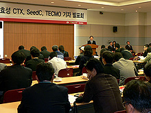 発表会では,初めにHYOSUNG CTXのCEO,Kim Seongnam氏が登壇。同社が韓国でサービスを行うオンラインSF FPS「LAND MASS」と,サービス中の「MicMac Online」(邦題 MicMacオンライン)をLieVoローンチ時のタイトルとして予定していること発表した。同氏は,これからスタートするLAND MASSは,同じくこれから始まるLieVoに向いているコンテンツであり,LieVoと共に成長させていきたいと語っていた。