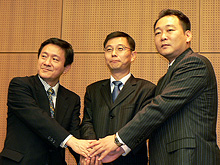 会場にはテクモの代表取締役社長 安田善巳氏も訪れており,崔氏に続く形で挨拶を始めた。同氏は,いままで末端ユーザーのほとんどが受け手として利用していたインターネットが,多くの人によって発信/共有され始めたことに触れ,LieVoも同様にWeb2.0の概念を取り入れたゲームプラットフォームであると説明。既存のゲームポータルとの違いを明確にした。 テクモはコンシューマ機用のゲームメーカーとして知られているが,現在「BASTARD!! ONLINE」「モンスターファームオンライン」「Gallop Racer ONLINE」といったタイトルの開発を進めており,今後はオンラインゲームに積極的に取り組みたいと,意気込みを語っていた。 現在PCで盛り上がっているオンラインゲームは,今後コンシューマ機や携帯電話/ゲーム機などに発展していくことを想定し,プラットフォームの垣根を越えたサービス提供を行うとのことだ。