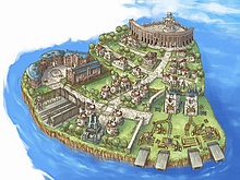 アクロニア大陸の南東、 アイアンサウスの東の沖合いに浮かび、 飛空庭でしかたどりつけないこの孤島では、 古来より“ものづくり”が盛んに行われ、 他の地域に見られない特殊な技術が発達しています。