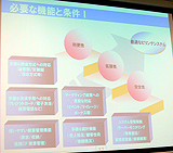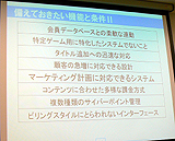 軽い休憩のあと,次いで登壇したのがAdbill Softのチェ・ギョンホ氏。内容は主にAdbill Softおよび同社が開発したソリューションについての説明であったため,細かい部分は割愛させて頂くが,大まかに言うと,市場の立ち上がり当初は月額課金などの比較的単純な課金決済システムだけしか求められてなかったオンラインゲームだが,オンラインゲーム市場の成長,そして競争の激化によって,多くの機能/課金スタイルが求められるようになり,独自開発することが非常に難しくなっている……という話になる。 実際のところ,昨今のオンラインゲームでは,アイテム課金をはじめ,ゲーム内ポイント,あるいはサービス内のポイントを使った課金,あるいはマイレージ的なポイント付加サービスなどなど,決済システムに要求される機能/仕様が複雑化しているのは,プレイヤーサイドから見ても一目瞭然。そんな状況もあり,課金システムをいちいちタイトルごと,あるいは各社ごとに作っていては非効率的だというのは,まぁ至極もっともな話だといえるだろう。