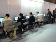 横一列に並んだ多数のノートPCと,プリンタが用意された適性診断スペースはなかなか繁盛していて,後ろで待っている人こそいないものの,席は割と埋まり気味だった。中身はというと,「人に親切にされたとき,素直にお礼を言えるほうですか?」などといった,ラジオボタンで答えを選択できる形の質問が100項目以上並んでおり,営業職向きかクリエイター向きかなどといった傾向が弾き出される。まあ,ほかの産業で使われるのとたいして変わらない,性格診断の一種である。