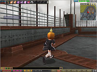 新たな階への入口は,光の塔でこれまで最上階だった場所,足元からはるか下方が覗ける外階段を上がった先にいる「動けないマーチャント」の横。これまで通行できなかった壁際に,新たな入口が開いている。 15階以後には重厚なキカイ系新モンスターはもちろん,3種類のクリーチャー系新モンスターも実装され,推奨進入レベルは70以上。塔の上階ということもあって,強力なモンスターが比較的狭い範囲に密集しており,光の塔のここまでの階を制覇したプレイヤーにも挑戦しがいのあるマップとなっている。パーティで訪れるとよいだろう。 そのマップの中,ひしめき合うモンスター達の間を抜けて室内の階段を上がり続けると,鉄筋や金属柵,鉄板がむき出しの最上階に出る。最上階では端からビルの下が見え,15階外でファイター系とスペルユーザー系専用のレベル70装備を販売している「動けないマーチャント」の姿すら,かなり下方に見えるほど。飛空庭の発着場も遠くに見渡せる。