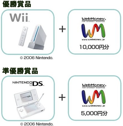 ■参加方法 特設サイト内、参加申し込みフォームからエントリーできます。(2006 年11 月28 日〜12 月24 日) ※各賞品は予告無く変更される場合がございます。 ※大会レギュレーション等の詳細は特設サイトをご覧ください。