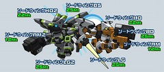 ・ソードウィングHD……22Mt ・ソードウィングBD……25Mt ・ソードウィングAM……12Mt ・ソードウィングBS……25Mt ・ソードウィングLG……25Mt ・ソードウィングHD2……22Mt(ソードウィング改用) ・ソードウィングAM2……12Mt(ソードウィング改用) ・ソードウィングLG2……25Mt(ソードウィング改用)