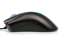 Razerはこれまで,左手でマウスを使う人をサポートするとして,左右対称デザインのマウスを提供し続けてきた。その意味で,右手用として投入されたHabuは,それまでのRazer製マウスとかなり外観が異なっていたが,Razer DeathAdderはそんなHabuに比較的近い外観という印象を受ける。 もっともHabuでは「サイドパネルの変更によるサイドボタン位置の変更」がサポートされていたり,スクロールホイールの近くにボタンが用意されていたりと,多機能な方向に振られている。これに対してRazer DeathAdderは,メインボタン×2に,位置固定のサイドボタン×2,スクロールホイールとかなりシンプル。このあたりは「Razer Diamonback」「Razer Copperhead」と続いてきたRazer製マウスの直系らしいといったところか。