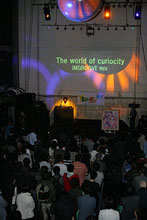 ゲームの構想や実装予定の説明が終わったところで,イベントもフィナーレを迎える。そして,そのフィナーレを飾るべく,ここで特別ゲストが登場した。ECOのBGM全体の中でも人気が高く,携帯サイトでも真っ先に着メロになっていたスノップ雪原のBGMなど2曲を,アレンジしたfishtoneの中坪淳彦氏が,「The World of curiocity IMGROOVE Mix」「Happy Merry Feeling BOG BRASS mix」の2曲をその場で演奏する。かくして大喝采のうちにステージは終了した。