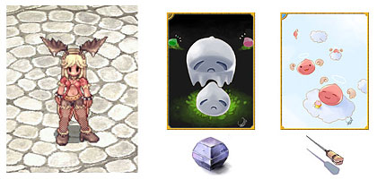 エンジェリングカード / ゴーストリングカード / 太陽神の兜 / 巨大ウィスパーカード / デビルリングカード / 錐 / 天使の羽耳 / 悪魔の羽耳 / ティアラ / 天使のヘアバンド / サバイバルロッド[1] / ドラゴンスレイヤー / ポールアクス[1] / グランドクロス / ブラッディロア / ベルセルク / エレキギター / ドラゴンウィング / 黙示録 / ライトエプシロン / アイスファルシオン / ドラゴンキラー / 悪魔のヘアバンド / ドラゴンの遺産 / 女王の鞭 / ファイアーブランド / フォーチュンソード / チェイン[3] / スタッフオブウィング / 琵琶 / 村雨[1] / ガリスン[2] / たれ猫 / ミニグラス / クラウン / 黒い猫耳 / 目隠し / 大きな金の鈴 / シニョンキャップ / 古い紫色の箱 / 丸いぼうし[1] / 名射手のりんご / クリップ / 古く青い箱 / イグドラシルの実 / ダイヤモンド3カラット / ランダム矢筒 / テイミングプレゼントセット / 宝石箱 / 包装された仮面 / 呪文書の束 / 救急箱 / 食料包み / 菓子包み