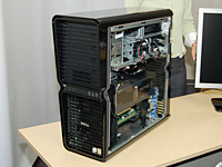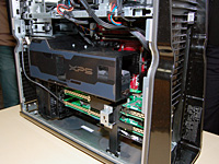 このほか,GeForce 8800 GTXのNVIDIA SLI構成にも対応する関係で,電源ユニットの容量がXPS 710の750WからXPS 710 H2C Editionで1kWに引き上げられているのもトピックだ。これだけの最新スペックを投入しながら,チップセットだけは従来と同じnForce 590 SLI Intel Editionになっており,少々気になったが,これは「(同チップセットで)クリティカルな問題が発生していない。また,nForce 680i SLIを検証する時間をかけるよりは,なるべく早く市場投入するほうがよいと判断したため」(佐々木氏)だそうである。