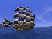 ・バルティックガレオン(リリースより) スウェーデンなどの北欧諸国で使用される砲撃用のガレオン船。舷側に張り出した2 段の船尾楼と外板に施された飾り板が特徴的な船です。3 層の甲板全てに多数の砲門を備えているため、非常に高い砲撃能力を持ちますが、水面に近い最下層の砲門から浸水しやすいという危険性も同時に併せ持っています。