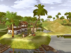 また,オープンβテスト時の実装ではないものの,今後追加される機能の概要も発表された。 まず,キャラクターの転生システムだ。転生とは,キャラクターが高レベルになると天界もしくは魔界の住人として生まれ変わることを示している。転生後は,万界城から天界・魔界それぞれの門を通じて新しい世界に行くことができる。 下のリリース引用部に添えた画面を見てお分かりのように,Perfect Worldのハウジングは,普通のフィールドに直接家を建てられるもののようで,「街を造れる」という言葉がいよいよ現実のものとなってくる。画面では,木の上に家を作ったりしているものも見て取れる。景色のよい場所に作るもよし,ギルドで集まって街を造っていくもよし,家用のパーツの充実にも期待したいところだ。