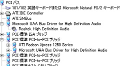 Windows XPのデバイスマネージャから確認してみると,サウンドデバイスが二つ認識されているのが分かる。ATI Radeon X1250の下にあるのがAMD 690G内蔵のものだ