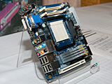 下段右MSI製のAMD 690G搭載製品「K9AGM2-FIH」。HDMI接続のデモが行われていた。AMD 690V搭載の「K9AGM2-L」と合わせて近日登場の見込み