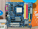 上段左,中央Albatron Technology製のAMD 690G搭載製品「KI690-AM2」。HDMI&DVI-I,D-Sub,コンポーネントビデオ出力端子を装備する。Serial ATAポートは4。メモリスロットはSO-DIMM専用だ