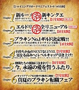 2007 年3 月29 日、2007 年上半期のブライトキングダムのアップデート予定を記載したロードマップ「シャイニングリロード マニフェスト」を公開いたしました。 4 月Chapter3! ブラキンナンバーワンギルド決定戦開催! トーナメント形式で繰り広げられるギルドバトルを実装! 5 月 Chapter4! レベルキャップをへ引き上げ! それにともない、新たなコンテンツが続々と追加されます。 新キンクエ、新装備、新マップ、新モンスター等々が一挙に実装されます! 6 月 Chapter5! ブラキンジューンブライド!待ちに待った結婚システムついに実装! 7 月 Chapter6! 4 次職実装とレベルキャップの引き上げ!今度の転職クエストはモノスゴイ! もちろんLV に合わせたコンテンツも追加! 1 周年を迎え、ますます広がるブラキンワールド! ※ 今回公開された内容以外にも、様々なアップデートが予定されております。 ※ 上記内容は予告なく変更される場合があります、あらかじめご了承ください。