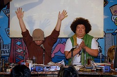 第一部の詳細は,会場に足を運んだイベント参加者のみのお楽しみということで割愛するが,業界裏話あり,アングラネタありで大いに盛り上がっていた。キーワードを挙げるとしたら,「ブロッケンJrの取り合いでケンカになったよね」(ファミコン版「キン肉マン マッスルタッグマッチ」)とか,「『キューティー鈴木のリングサイドエンジェル』(メガドライブ版)のパッケージって,ビデオの安売り王に売ってそうだよね」とかいったところか。そんなこんなで第一部は終了。ここで一旦休憩が入る。
