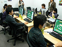 NHN Japanのオフィス内に用意された特設会場で,2:00PMに開会式が行われた。森川副社長による挨拶のあと,大会のルール説明がなされ,選手達は予選会会場へと移動。そこには8台のPCが並べられており,「麻雀3」による対局が行われた。