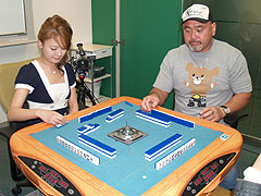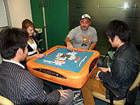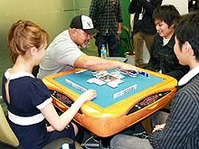 ハンゲームの大人気コンテンツ「麻雀3」のオフライン大会として,NHN Japanは4月21日,「黄金リーチ棒争奪戦」を開催した。 大会に出場したのは,約5200名の応募者の中から選ばれた雀士,計10名(うち3名は欠席)。まずは彼らで「予選会」を行い,これを勝ち抜いた上位2名が特別ゲストのプロレスラー武藤敬司さん,プロ雀士成瀬朱美さんと実際の麻雀卓を囲んで,「黄金リーチ棒」をめぐり最終対局に挑む。 また,麻将連合-μ-(ミュー)の井出洋介名人と草場とも子さんが大会の実況を行い,その内容はムービーとして後日,ハンゲームに掲載される。