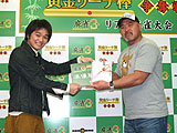 優勝者のG2さんは「武藤さんのファン」ということで,黄金リーチ棒もさることながら,武藤さんと直に対局できたことが何物にも替え難い良い思い出となったことだろう。約5200名の応募者の中から選ばれたことを,本当に幸運と感じていたようだ。 授与式では成瀬さんが2位賞状および賞品授与を辞退したので,優勝賞品の「黄金リーチ棒」はG2さんに,2位賞品の「純銀リーチ棒」は虎さんに贈られることとなった(名前を彫るため後日渡される模様)。 その後は予選会の3位と4位が卓に呼ばれ,武藤さんと成瀬さんの「エキシビジョンマッチ」に参加する幸運を手にしたのであった……が,こちらはプライベートな対局に近かったので詳細は割愛させていただく。 麻雀ファンならびに武藤敬司ファンは,第2回が開催されることを祈りつつ麻雀の腕を磨き続けよう。(Kawamura)