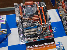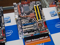 DDR2対応の上位モデル「P5K Deluxe/WiFi-AP」。2007年6月上旬発売予定で,予想実売価格は3万7000円前後