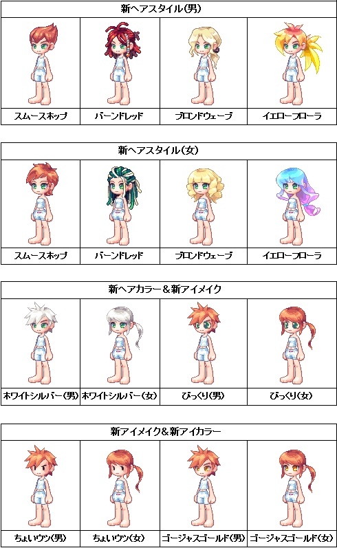 新規追加の容姿 | 変更箇所 | 名称 | 性別 | 価格