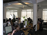 CCP社内の様子。欧米の会社らしく照明が若干暗いという以外は,いたって普通だ。元々魚の加工工場だった建物の2階と3階がオフィスとして利用されている