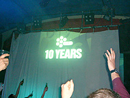 創立10周年のパーティは,レイキャビク市内にあるNASAというクラブで行われた。日本の会社が行うものとはかなり趣が異なり,大音量の中で,踊りまくり,飲みまくりといった感じのパーティだ。大きな声を出して隣の人と話をしなければならないので,けっこう疲れたが(そしてのどが渇く),偉い人の毒にも薬にもならない“お言葉”はなく,愛想笑いを浮かべる必要がなかったのは嬉しい。 会場では,EVE Onlineに登場するキャラクターのような格好をした人達が給仕をしており,ゲーム内で有名なドリンクQuafe(ウォッカベースのカクテルだった)が用意されていたり,EVE Onlineのムービーが常に流れていたりと,らしさあふれるパーティだった。11:00PMからは関係者以外でも招待状を持っていれば入場できるようになっており,会社の創立記念パーティに関係者以外の人が大勢いたというのも凄いが,3:00AMを過ぎてもCEO,CFOといった会社の重役が会場内を歩き回っていたことにも驚いた。