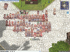 優勝ギルド発表後の「RWC2007」日本特設ワールド。ギルドごとに集まって記念撮影(?)が行われた