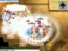 前回の予選レポート記事でお伝えしたとおり,再試合はハイプリーストを抜いた6対6で行い,最初に戦闘不能キャラクターを出したギルドが負けとなる。その一瞬だけ最大火力を発揮して,誰か一人を狙えばよい再試合は,メンバー構成やステータス値のバランスを練りに練る通常の試合と大きく異なるわけだ。 再試合を告げるメッセージがRWC2007ワールドに流れると,次の試合をのんびりと待っていたプレイヤー達も少なからず驚いたようで,イズルード中央にプレイヤーキャラクターが集まり始めた。「クリエイターのアシッドデモンストレーションで瞬殺でしょ」「ハイプリーストがいない以上,寒いジョークで凍結を狙うべき」「心臓に悪い試合だなぁ」などなど,PvP好き達のチャットが盛んに飛び交い,イズルードはにわかに活気づいた。 6対6の再試合では,お互いの職業構成に大きな変化は見られなかった。Stella cadenteが,ランドプロテクターからはみだしたImperial Knightsのクラウンを凍結させてから戦闘不能にし,1分少々と短い試合時間で決着をつけた。