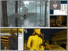 さて,肝心のZome Engineは,画面を見るとツールベースのかなり作り込まれたエンジンのように思われる。実際のゲーム画面を見る限り,まあ,空の描写が綺麗だったのがちょっと印象に残っているが,画面が格段に美しいとかいうこともなく,よくあるゲームと大きな違いはない。モデリングやモーションデザインは,まだまだ研究の余地がある。物理的な挙動については,比較的きちんと行われているようだ。多少すり抜ける部分はあるものの,おおむね登れるところには登れ,落ちるところからは落ちる。