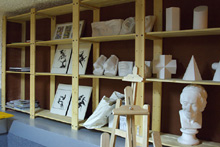 学校の美術室を思い出すような場所だが,ここがVYKARIANのライブラリーだ。すべての資料やトレーニングの課題で制作したものはここに蓄積されていく