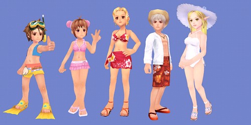 『ダンピル水着セット』:サマーパラダイス、パラダイスビーチサンダル、パラダイスビーチハットのセット。レベル制限なしで装備可