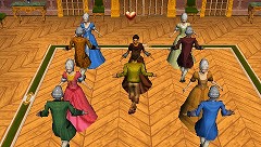 (写真下段)戦果を挙げるにつれてより高い称号を獲得し,やがて港町の長の娘と,ダンスパーティに参加できるようになる。ダンスゲームである程度の成績を収めると娘の自分に対する好感度が上がり,ロマンスに発展するのだ