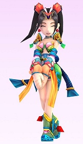 傾国的とまで言われた伝説の美少女が着ていたと伝えられる、色とりどりの色彩に彩られた丈の短い服。熱血石を合成出来る。着用時全気功+1。(女性専用)