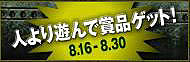 キャンペーン期間中に稼いだkill数の合計の多い上位50名様までに賞品をプレゼントいたします。 ■キャンペーン期間 2007年8月16日(木) 〜 2007年8月30日(木)14:00 ■賞品 【1位】 1)VIPルームマスター(30日) 2)5番スロット利用権(30日) 3)M60(30日) 4)WINCHESTER(30日) 5)M134(30日) 6)発煙筒(30日) 【2位】 1)経験値 30%UP(7日) 2)5番スロット利用権(30日) 3)M60(30日) 4)WINCHESTER(30日) 5)M134(30日) 6)発煙筒(30日) 【3位】 1)5番スロット利用権(30日) 2)M60(30日) 3)WINCHESTER(30日) 4)M134(30日) 5)発煙筒(30日) 【4位〜10位】 1)10,000dinar 【11位〜50位】 1)5,000dinar ■配布方法:アイテムが受け取れるクーポンをメールで配布させていただきます。 ■配布日時:2007年9月13日(木)定期メンテナンス時 ※kill数の合計は1つのアカウントでキャンペーン中に稼いだkill数の合計です。 ※クーポンは条件をクリアしたアカウントでのみ、ご利用いただけます。