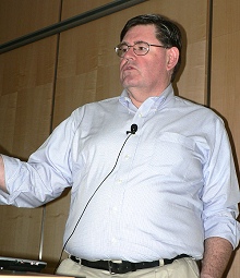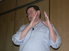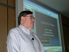 RTSファンにはお馴染み,Ensemble StudiosのBruce Shelley氏が,GCDC二日目となる現地時間8月21日に講演を行った。そのタイトルは,「Designing by Playing」。これは,テストプレイを繰り返しながらゲームをデザインしていくという開発手法の呼び名で,Age of Empiresシリーズの作品はすべて,この手法を用いて開発したという。