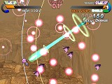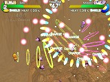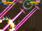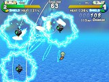 敵の攻撃は,ハイパーゲージを消費することで展開する「シールド」を張ることでも無効化できる。しかし,ハイパーゲージは強力なハイパーウェポン攻撃でも必要となるので,使いどころが肝心だ。ごく簡単に言ってしまうと,ハイパーゲージは敵の攻撃をダッシュでかわすことで大きく上昇するのだが,その際にはヒートゲージの上昇率に注意する必要がある。敵弾(と自弾)が飛び交う中を高速で移動しつつ,個々の行動のリスクとリターンを常に意識しながら次の一手を打つというのが,本作の戦闘における醍醐味だ。