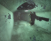 主人公は特殊部隊の隊員でもなく,何か特別な能力を持っているわけでもない“ただの人”。おせじにも強いと呼べる存在ではない。そんな主人公なだけに,基本的には隠れながら,逃げながらの行動になる。派手な立ち回りをすると敵を集めてしまうので,攻撃方法も後ろからナイフで刺すなど,かなり地味なものになる。Orion Gamesのオリジナルエンジンの効果で,敵は主人公が出す音や,影の動きなどにも反応するため,クリアするにはかなり頭を使うことになりそうだ。また,AGEIA PhysXテクノロジーをサポートし,ゲーム内に登場するほぼすべてのオブジェクトが破壊できるだけでなく,床を破壊したときに出た石などを武器として使うことも可能だ。 鬱憤が溜まりそうなシングルモードだけでなく,マルチプレイも用意されており,デスマッチなどを楽しめる。正直,みんなで後ろをとりあうのも,非常に後ろ向きだなぁと思っていたが,このゲームに合ったマルチプレイモードの実装を考えているそうだ。いったいどんなモードになるのだろうか。いまから楽しみである。