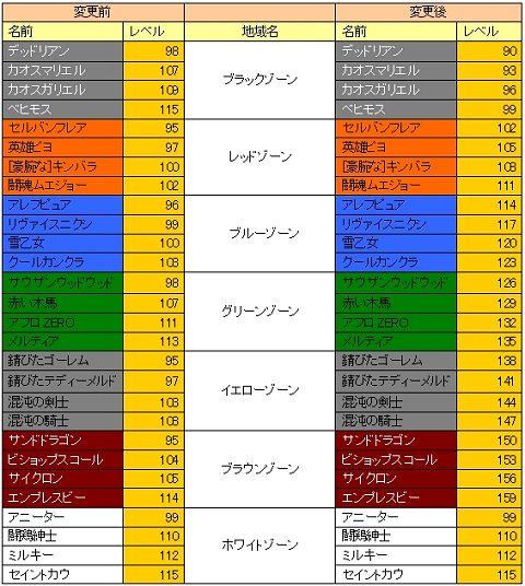 5.レインボーゾーン レインボーゾーンの場合、フィールドの属性を生かし、様々なレベル帯(LV100〜150)を基準として、レベルの再調整やバイルの再配置で、狩場に幅が得られるようになりました。