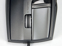 また少々気になったのは,サイドボタンの使い勝手。というのも,幅広グリップとドライグリップで,ストロークがずいぶんと異なるのである。とくにドライグリップでは,メインボタンに近いほうのボタンが,やや「Microsoft IntelliMouse Explorer 3.0」を思わせるグリップ部へのめり込み具合を見せており,若干押しづらい。また,いずれもグリップ上でボタンがつながっているので,人によっては押し間違えることもあるだろう。新版のG5よろしく,ボタンはセパレートタイプにしてほしかったところである。