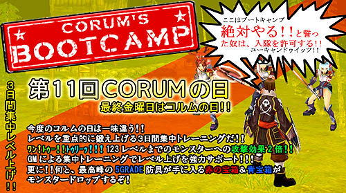 今回の『コルムの日』メインイベントは、GMが鬼軍曹となり入隊を志願するプレイヤーの皆さんを最強の戦士へと鍛え上げるトレーニング。その名も『コルムブートキャンプ』!