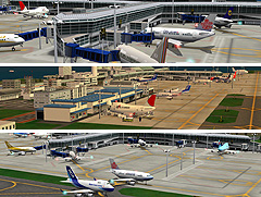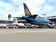 | 空港サイズに比較して発着機の数が非常に多い。賑やかな雰囲気を「楽しめる」までには,けっこうプレイしがいがあるはずだ |