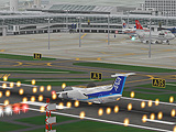 さて話を変えて,空港ごとのもう一つの特徴である,雰囲気について。本作は,登場する機体や航空会社が多彩である点も大きな特徴になっている。新鋭の国際空港だけあって,数多くの外国航空会社の機体が登場し,全体に華やかだ。国内に関しても,本作でしか見られない,全日空機のボーイング737-700型・1番機「Gold Jet」が姿を見せてくれる(この機は実際に,セントレア−台北便に就航している機体だ)。土地柄,トヨタ自動車のチャーター機であるビジネスジェットが出てきたり,JAL系列のJ-Airに所属する小型ジェット機がタッチ・アンド・ゴー訓練をしたりと,イベントのバリエーションも豊富だ。