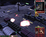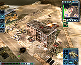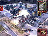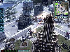 | 大きなビルが整然と建ち並ぶマップもある。いったん戦闘になると,キレイな街路樹や電灯は爆走する戦車になぎ倒され,ビルは砲弾を浴びて破壊される。簡単な操作で複雑なことを行える操作性と,こうした迫力ある演出が,Command & Conquer 3の醍醐味の一つだ |