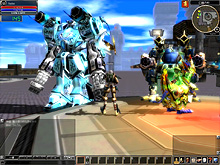 | プレイヤーが選択できるクラスは「戦士」「魔法士」「召喚士」「機攻士」の四つ。中でも,巨大なメカに乗って戦う機攻士は見どころの一つ。搭乗に必要なレベルは100 | |