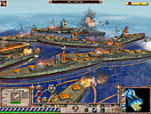 細部まで綺麗に描かれている戦艦。戦艦同士の戦いもかなり派手に描かれている |